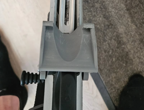 This design was a pretty poor imitation of Arredando's... and yet it worked. I got a better printer not long after that which allowed me to do a lot more design work and a lot less printer work. Ender 3 is a good learning platform, but it's far from reliable, convenient, consistent, or fast. Now I have iterated this many many many many times to get to a design more unique and in some ways I would claim is better than Arredando's. Primarily the way that the stick interfaces with the ramp. The wedge shape is advantageous for spreading out the pressure, having a larger target to aim for, and consistent alignment.
